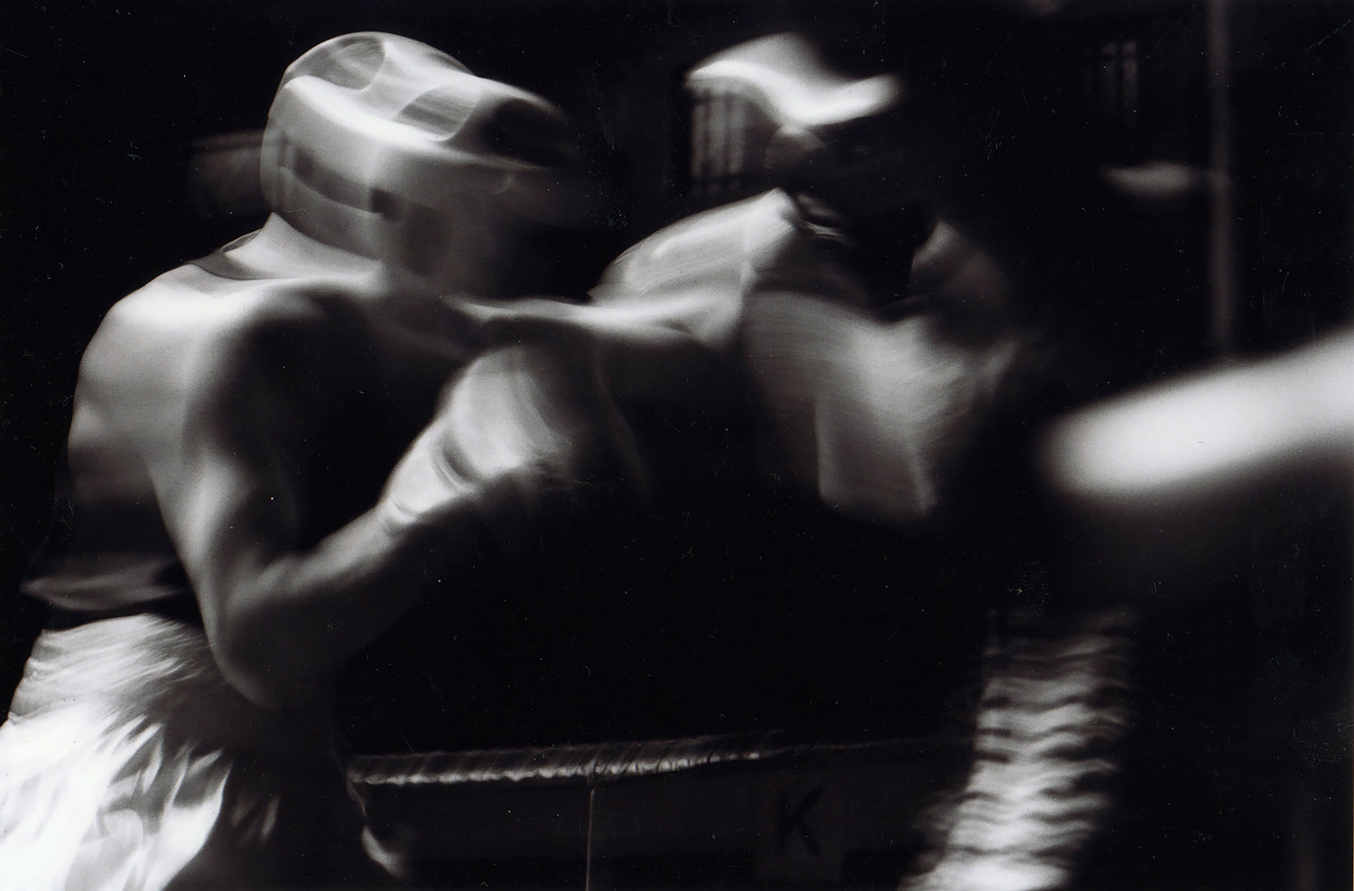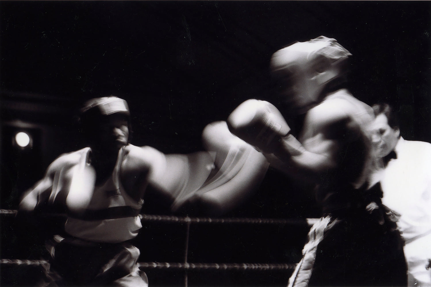 I shot the photos series, Repton, whilst on a residency at the Repton Boxing Club in Bethnal Green, London. These images were long exposures in camera in black and white and on 35mm film. The long exposure exposed the rhythm of the fight the visceral expression and primal movement, at the same time moving the brutal into a dance of beautiful blurred lines with frames of tension. These are printed on mirror polished steel so that as a viewer you become part of the work referencing mirror boxing in the gym and questioning our own voyeuristic involvement in the fight.
